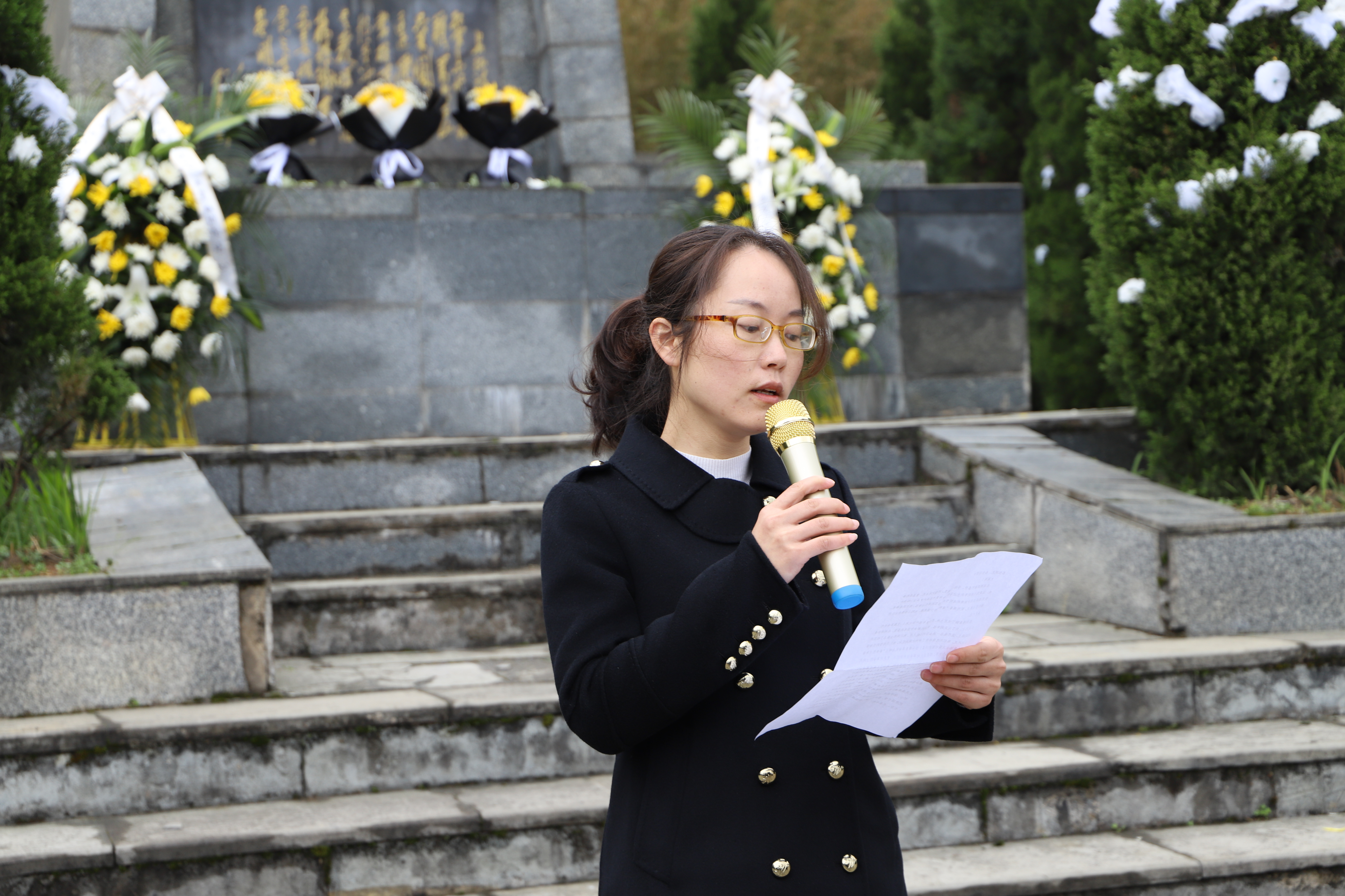 早上10 时,全体人员抵达百宜红军烈士陵园,祭扫仪式由我院学生党员许媛同志主持,整个活动仪式简明庄严,现场氛围隆重肃穆。首先是教师党员向烈士献花,随后,全体人员怀着浓浓的哀思和崇高的敬意,向革命先烈默哀三分钟。在宣誓和主题发言中,同志们均表达了对红军烈士的崇高敬意,并决心要从红色基因中汲取走好新时代长征路的营养和力量,把革命精神转化为实现“中国梦”的实际行动;在“先烈,我想对您说”的交流发言环节,孙婷、胡朝敏同志面对“红军烈士永垂不朽”纪念碑肃然起敬,表达了对先烈们的感恩和哀悼,将继续身体力行践行革命精神,在砥砺中进取、在坚守中奉献。